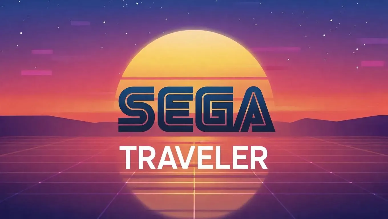 Generate a retro-futuristic Sega Traveler logo AI design, blending 2004 gaming aesthetics with Dreamcast-inspired elements. Create nostalgic, edgy visuals using vintage color palettes and angular shapes for authentic early-2000s Sega branding. Perfect for gamers seeking AI-powered retro logo revival.