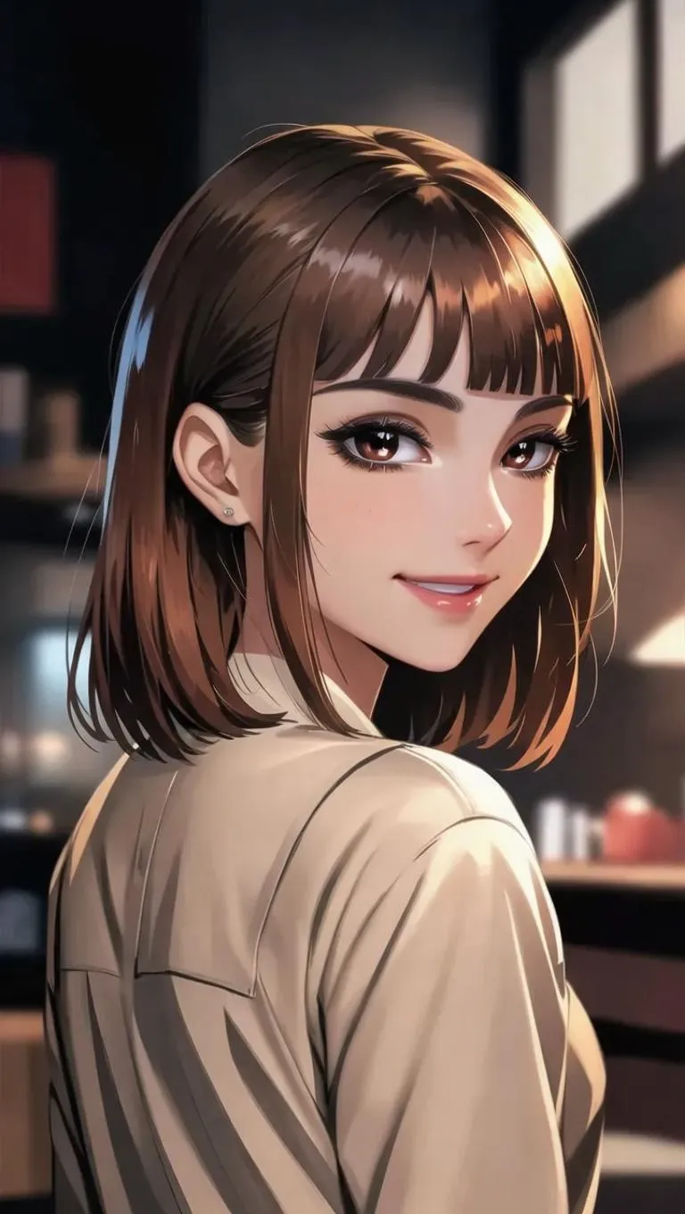 Generate an AI anime sketch of a female character with brown hair, a subtle smile, and rear view perspective. Explore minimalist black-and-white styles, film grain effects, and close-up details for professional anime art. VivaGo AI transforms text prompts into high-quality sketches, blending creativity with precision.