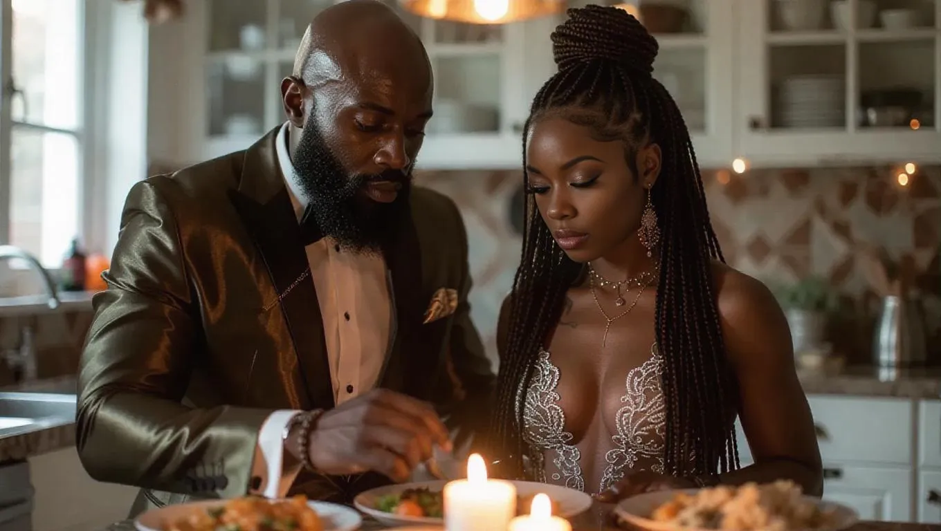A highly detailed, surreal scene where the flour piled in front of a woman using a rolling pin transforms into crashing waves. The flour swirls and rises like foamy waves at the beach, the texture resembling soft, white sand. The woman, with a focused expression, is gently rolling the dough, while a child and an adult joyfully play in the flour's delicate waves, creating a dynamic contrast between the domestic task and the playful scene. The atmosphere is warm, with soft natural lighting enhancing the texture of the flour, evoking a sense of nostalgia and whimsy. The waves of flour gently blur into the background, resembling a beach horizon.