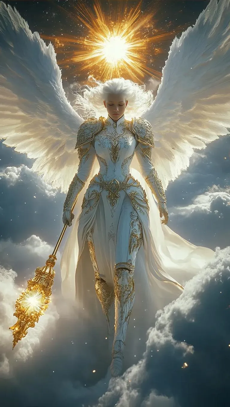 Craft hyper-realistic AI-generated visuals of a divine angel descending with glowing hair, ornate gold-white armor, and prismatic scepter. Capture cinematic godlight, photorealistic wings, and dynamic motion in 8K resolution. Perfect for celestial imagery with volumetric lighting, ultra-detailed textures, and cosmic backgrounds. Elevate digital art using vivago.ai’s advanced tools for professional-grade, ethereal storytelling.