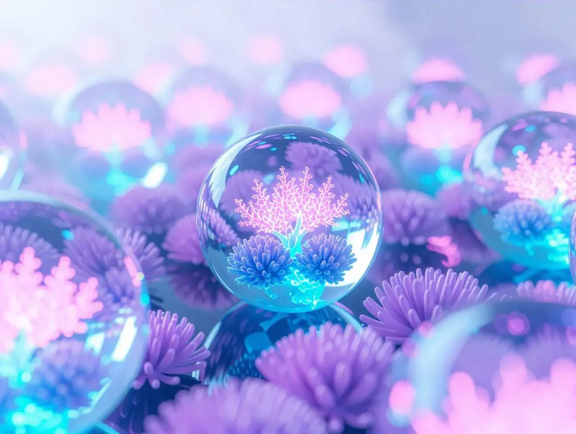 Create mesmerizing AI-generated cosmic art with vivago.ai. Transform text into ethereal neon coral forests encased in glowing orbs, drifting through a misty void of vibrant lavender-teal swirls. Explore surreal visuals and professional editing tools for stunning AI effects.