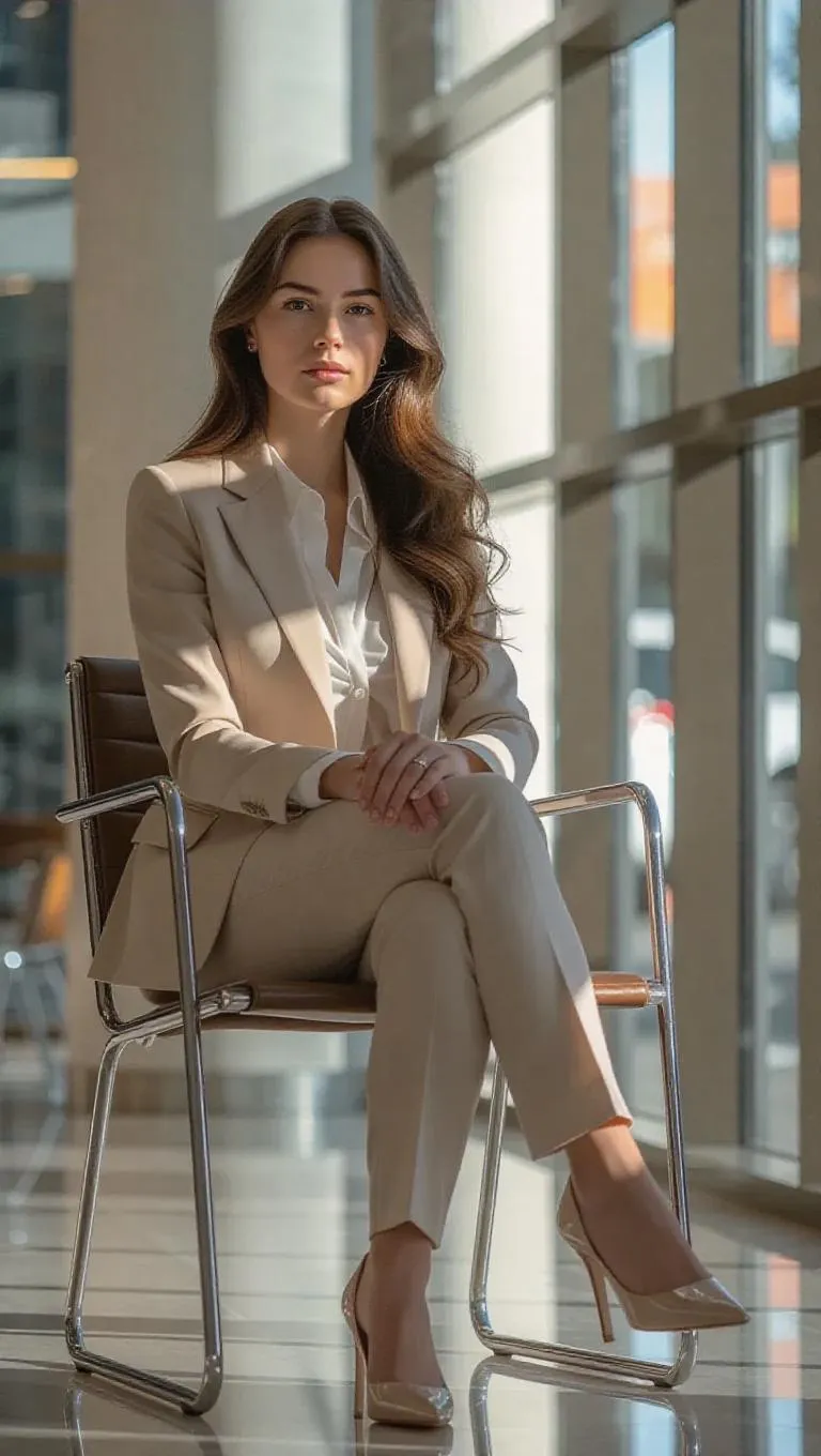 Transform text into hyper-realistic AI imagery with this professional business woman scene. Featuring a modern office waiting room, Nikon color palette, 4K studio-quality details, sharp clothing textures, and lifelike skin tones. Shot via 200mm 1.5 aperture for cinematic depth—perfect for corporate visuals, ads, or portfolio content.