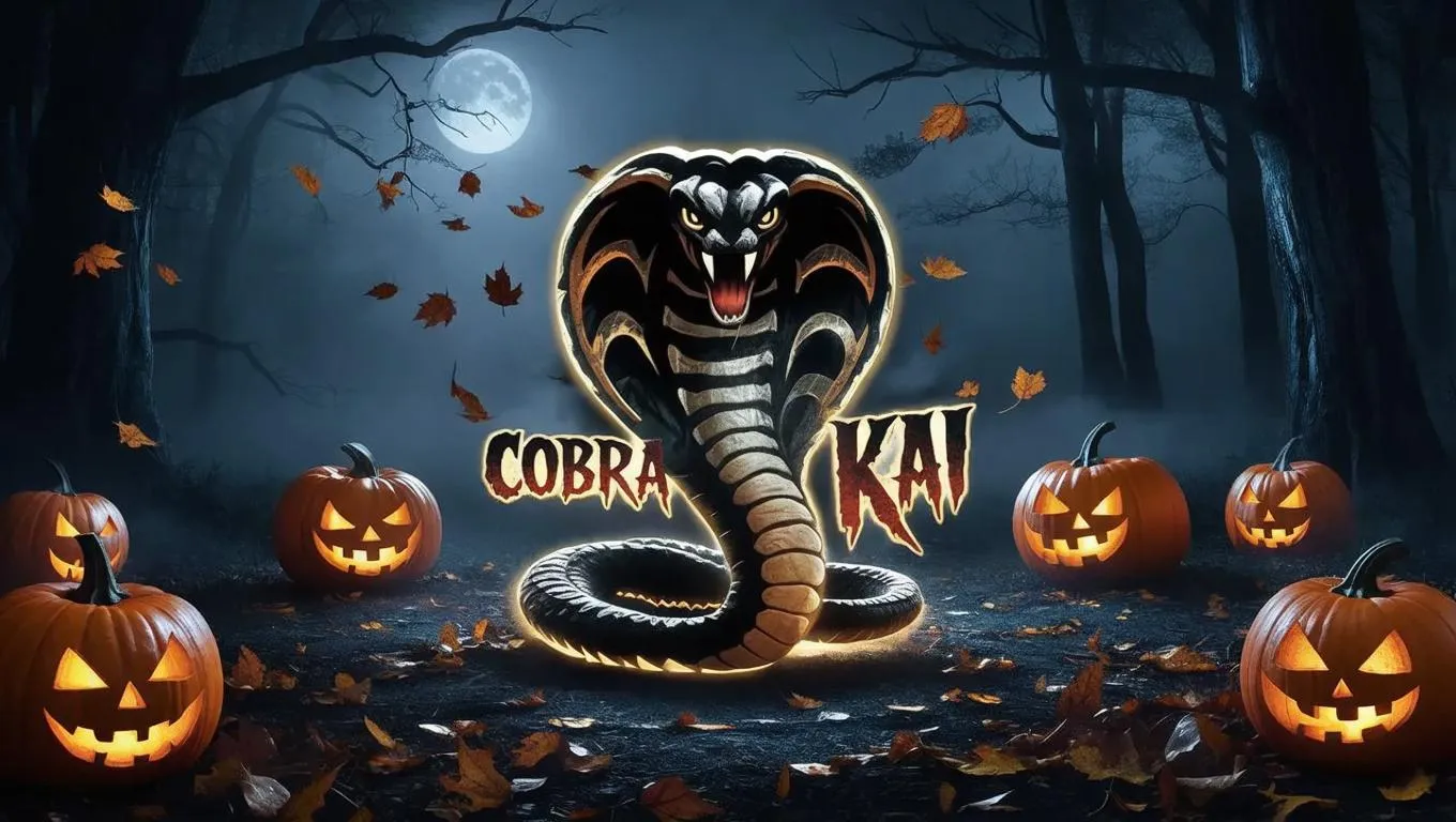 Create a Halloween-themed Cobra Kai logo with AI-generated spooky designs. Blend retro 80s nostalgia with edgy cobra motifs, glowing text effects, and eerie vibes. Perfect for seasonal merch, social media, or fan tributes. Customize AI-powered graphics for viral-worthy horror twists on the iconic Karate Kid rivalry. Unleash your creativity with haunting, retro-futuristic visuals.