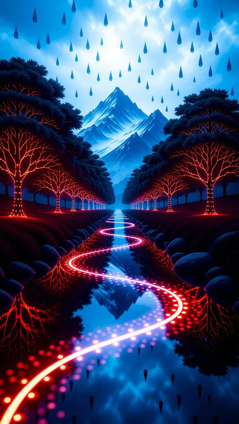 Experience the surreal beauty of "The Rain that Caught Fire"—an AI-generated visual of mystical rain with cool flame droplets. Witness glowing landscapes and ethereal transformations as vivago.ai turns your prompts into mesmerizing art. Explore inner fire and surreal imagery with cutting-edge AI creativity.