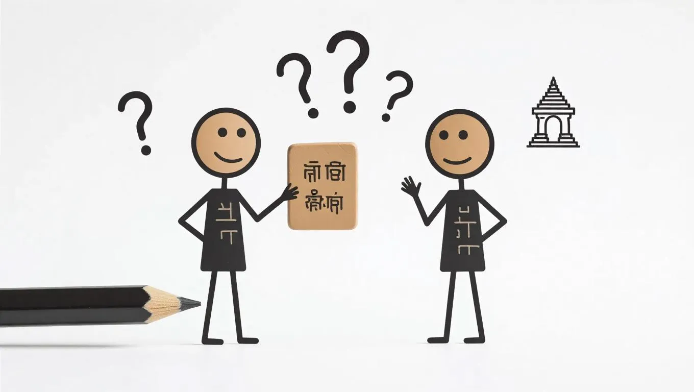 Explore AI-generated stick figures debating cooking vs. sacred offerings in bold visuals. This clear, minimalist scene features symbolic clay tablets, question marks, and iconic imagery, blending everyday life with spiritual themes through easy-to-understand stick figure storytelling.