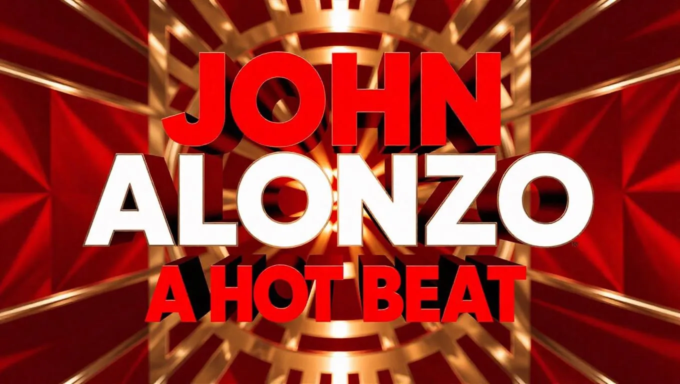 "John Alonzo - A Hot Beat" in bold, attention-grabbing text on a music album cover, themed like 50 Cent's "In Da Club," with vibrant red and gold colors. The text is set against a luxurious backdrop with a hint of urban flair, maximizing engagement, views, virality, and earning potential.