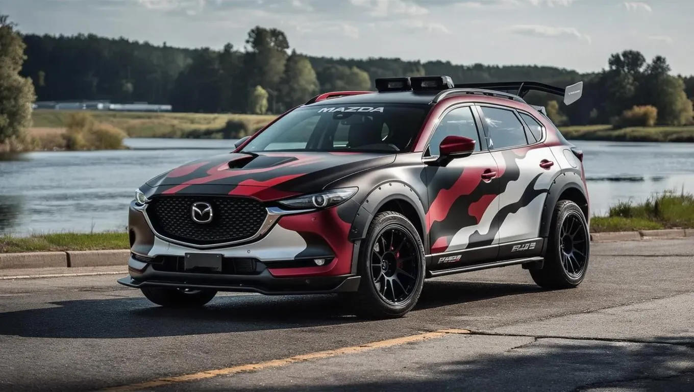 Transform your vision into AI-generated art with a high-performance Mazda street machine. Featuring red-black matte camouflage, glossy white accents, and bold contrasts, this off-road-inspired vehicle shines under sunlight near riverside settings. Dynamic wide-angle motion captures its aggressive stance, blending classic red-black-white tones with modern custom enhancements for striking visual impact. Create professional-grade automotive visuals effortlessly using AI-powered tools.
