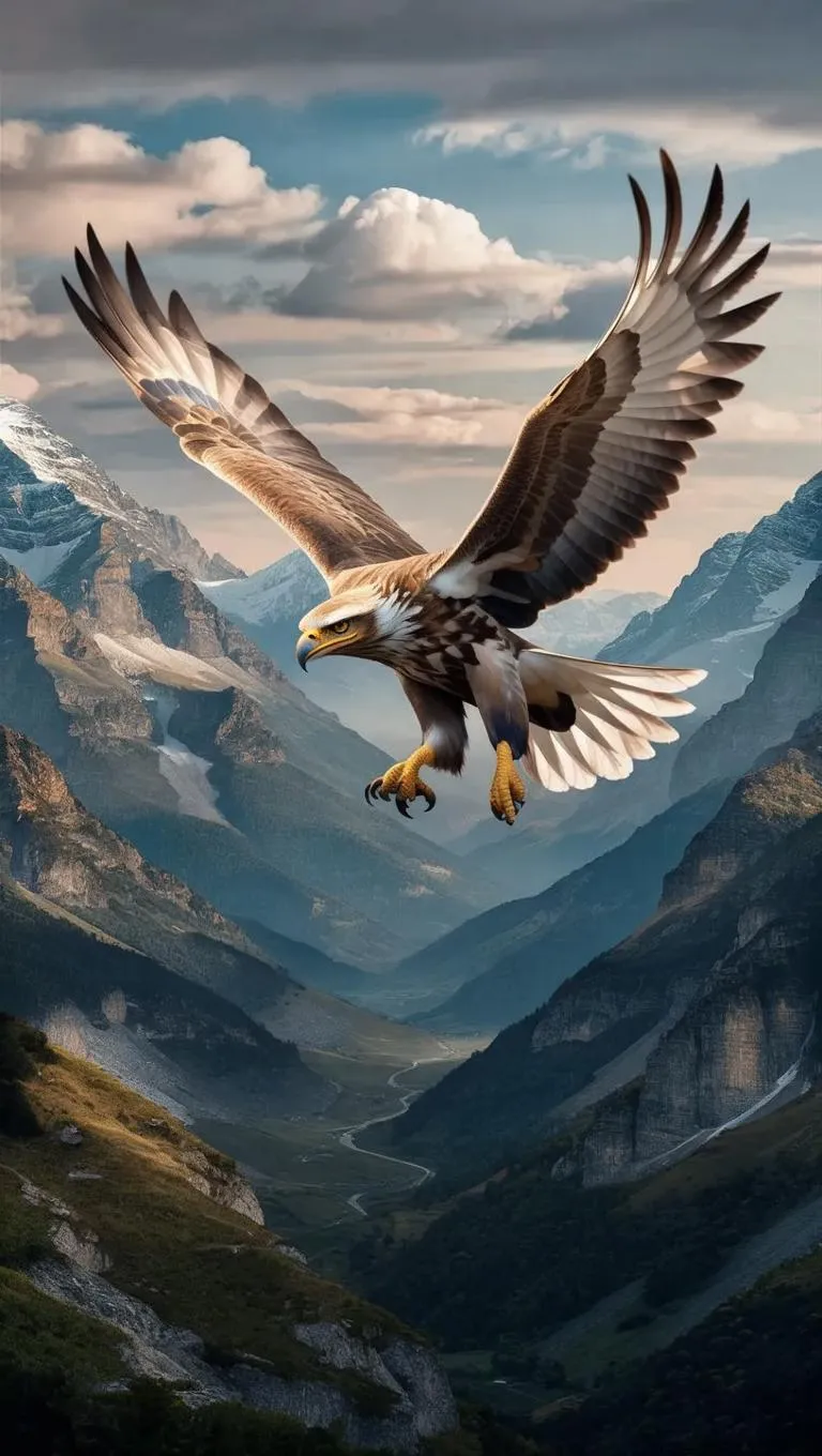 Generate stunning 4K realistic visuals of a majestic eagle soaring above rugged mountain peaks with VivaGo.ai. Our AI-powered tools craft dynamic imagery symbolizing vision, strength, and ambition. Elevate your projects with professional-grade, lifelike details for ads, art, or branding. Unleash AI creativity for nature-inspired, high-resolution masterpieces.