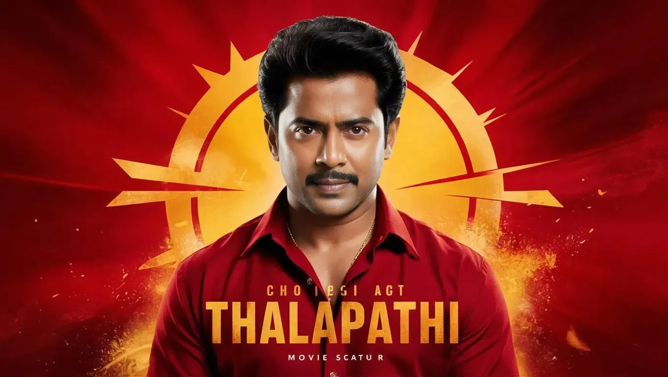 Generate a vibrant Thalapathi-themed design with abstract elements, bold red and yellow hues. AI-powered tools craft dynamic, cinematic visuals inspired by iconic film aesthetics. No human figures—focus on striking patterns, textures, and symbolic motifs for standout movie-inspired artwork. Perfect for posters, promotions, and digital media.