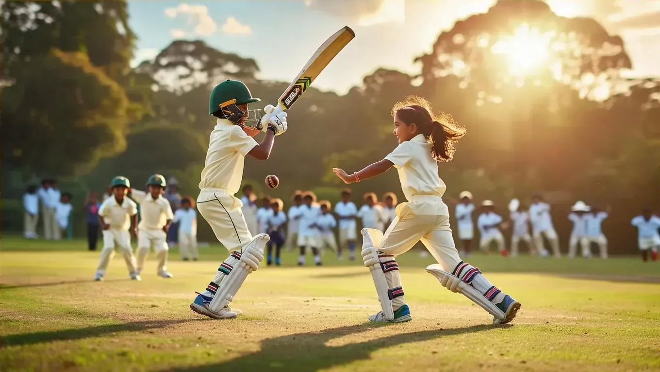 Generate vibrant AI images of children playing cricket with vivago.ai. Transform text prompts into dynamic visuals of a boy and girl in action, enhanced by professional-grade AI tools, effects, and editing for captivating, creative content.
