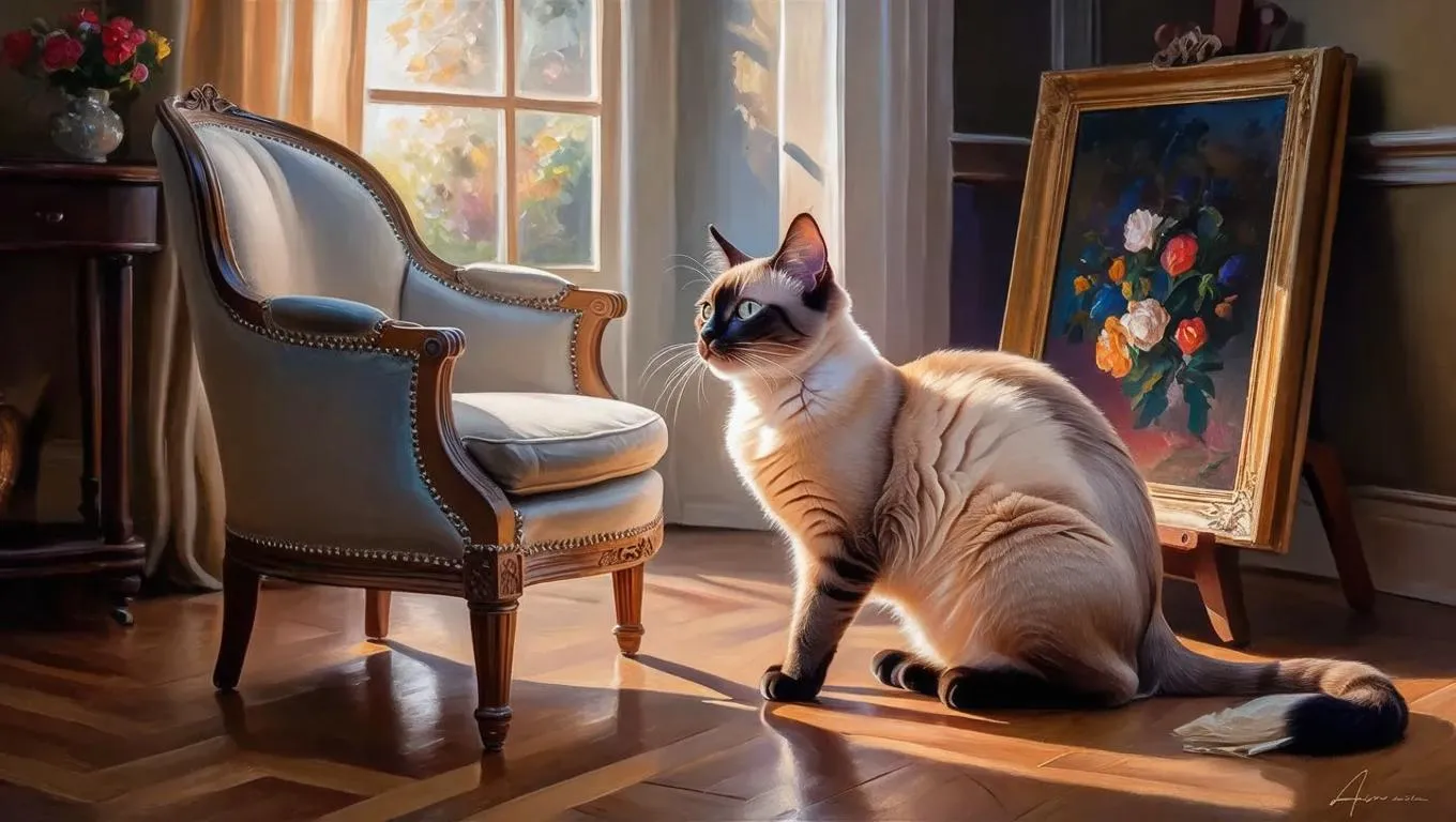 Transform your text into AI-generated visuals with VivaGo.ai. Create a playful scene of a cat perched on a chair, intently observing a colorful painting on the floor. Elevate creativity with AI art tools for lifelike images, blending whimsy and realism through text-to-image prompts and advanced editing features.