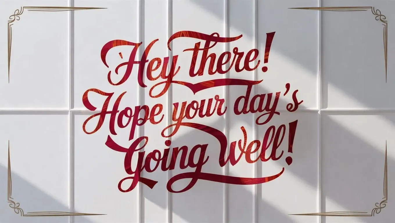 Create AI-generated "Hey there! Hope your day’s going well!" calligraphy typography in vector silhouette style on a clean white background. Perfect for social media, cards, or digital art. Vivago.ai transforms text prompts into elegant, professional-grade visuals with curated AI effects for standout typography and creative projects.