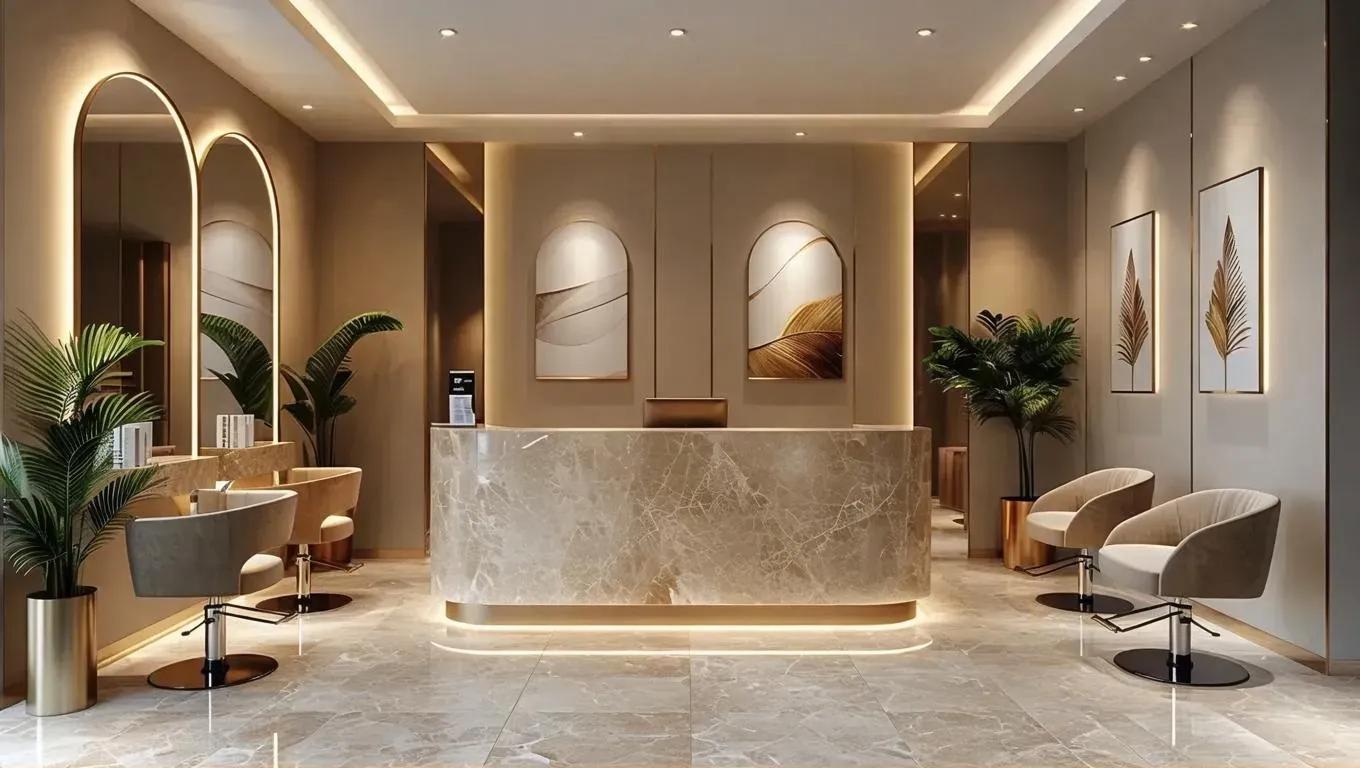 Explore AI-generated salon reception area visuals showcasing modern decor, styling stations, and spa amenities. Transform text prompts into vibrant beauty salon interiors with Vivago.ai's AI image generator for professional-grade hair & beauty content.