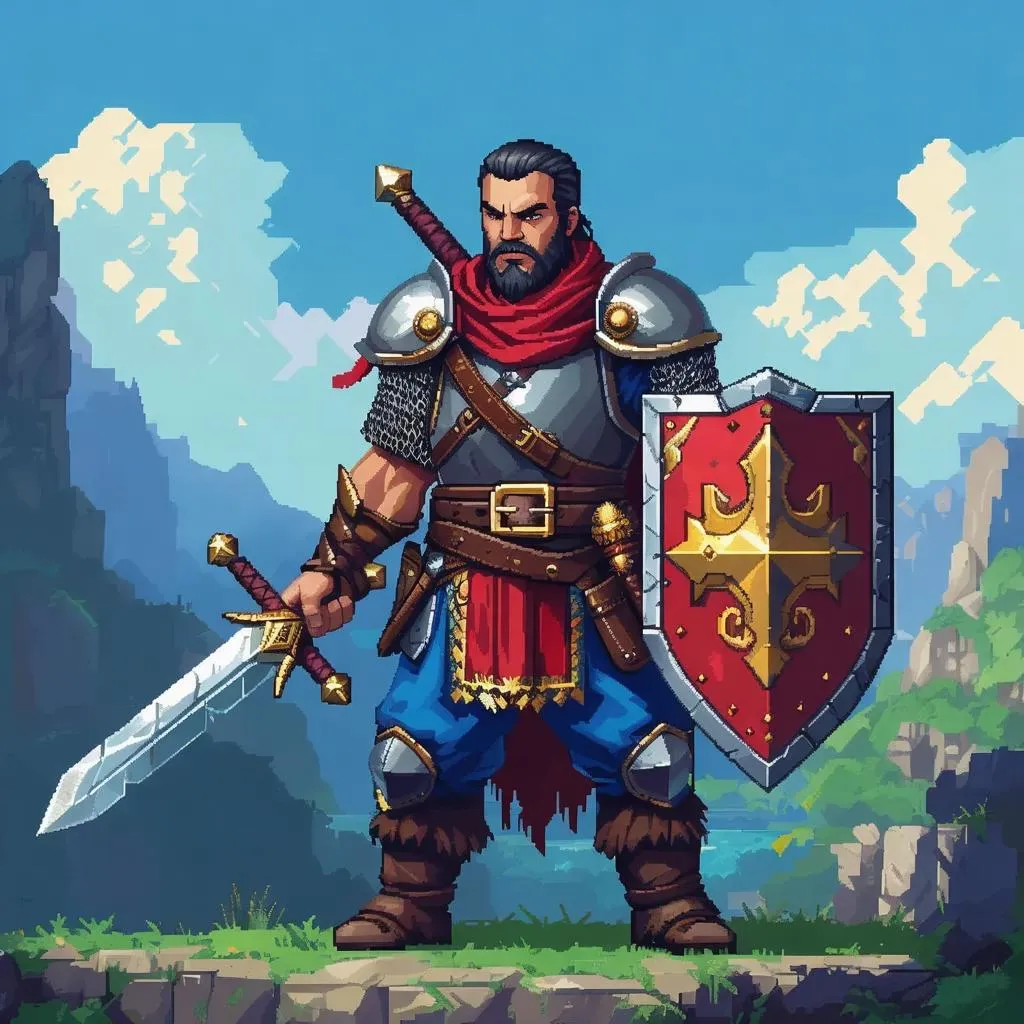 Generate dynamic pixel art warriors wielding swords & shields with Vivago.ai's AI tools. Craft retro-style videogame characters featuring bold colors, sharp lines, and nostalgic 8-bit aesthetics. Ideal for game developers seeking customizable, professional-grade sprites and assets for action-packed RPGs or strategy games. AI-powered creativity meets classic gaming vibes.