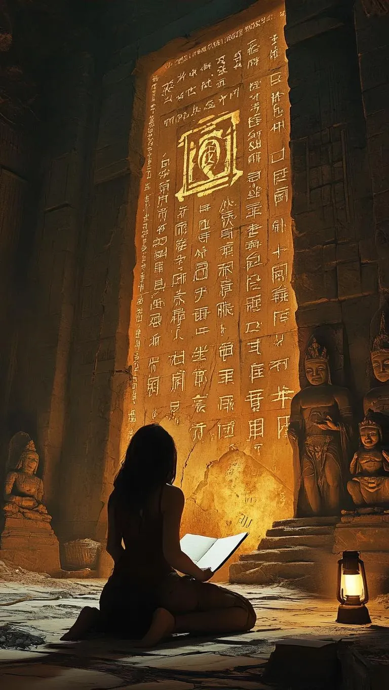 AI-generated anime art brings Irina's archaeological quest to life in a cinematic watercolor scene. Ancient half-sunken temple hall, glowing glyphs, dusty idols, and shifting hidden doorways rendered with mythic detail. Vivago.ai crafts immersive visuals blending warm lighting, cracked stonework, and ethereal storytelling.