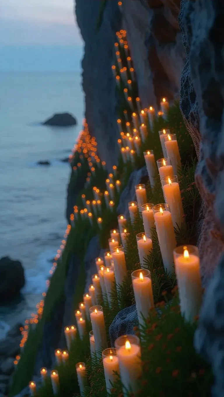 Discover AI-generated art with "The Candle Garden on the Cliff of Whispers": a surreal landscape where candle flowers bloom, capturing whispers in their flames. Explore emotional storytelling through vivid imagery—glowing hues reflect hidden wounds, a girl’s hum animates the scene. Create mystical visuals effortlessly with VivaGo.ai’s AI tools, transforming text into enchanting, professional-grade artwork.