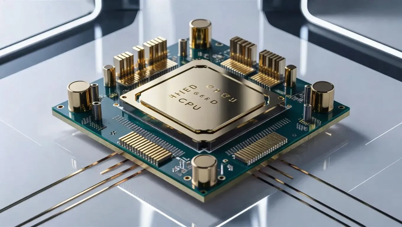 Explore AI-generated ultra-realistic close-ups of high-end CPUs with intricate circuitry, reflective gold connectors, and futuristic tech aesthetics. Vivago.ai crafts detailed visuals using advanced AI image tools, blending sleek minimalist backgrounds and ambient lighting for professional tech-inspired designs. Perfect for showcasing computer components with precision.