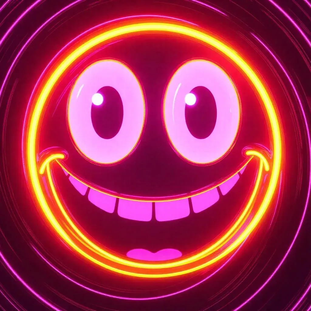 Create a vivid AI-generated grinning face with big eyes, wrapped in neon swirl chaos textures. Features a bold yellow, deep-pink, and white palette for electrifying contrast. Ideal for edgy digital art, social media visuals, or surreal designs. Transform text prompts into dynamic visuals with vivago.ai's AI tools for eye-catching, professional-grade creative projects.