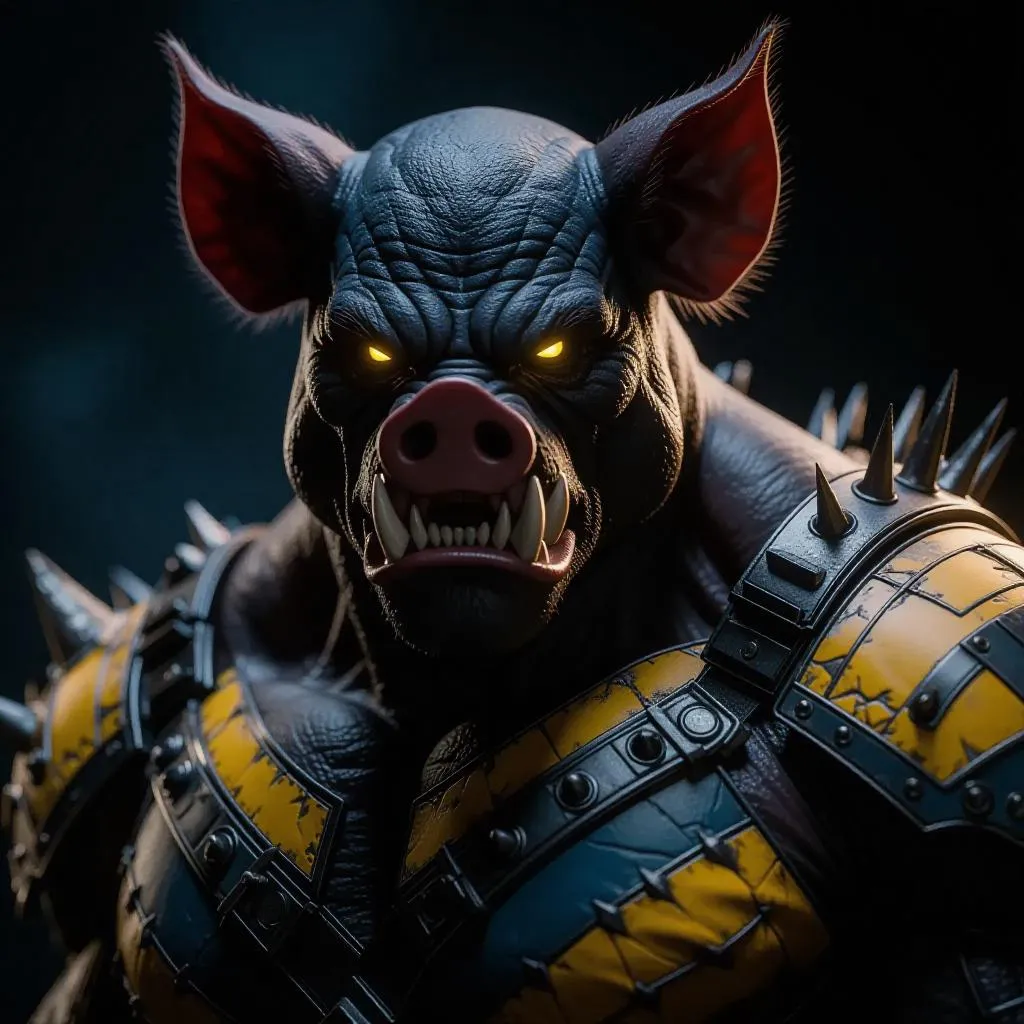 Generate a striking AI Brute character with pig ears in a cool-toned blue-gray, white, and yellow palette using Vivago.ai. Transform text prompts into vivid fantasy visuals with professional AI image generation tools, unique effects, and seamless editing for bold, imaginative artwork.