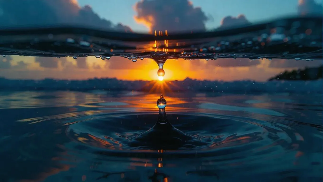 Stunning AI-generated visuals of a raindrop cascading into a microplastic-polluted ocean and a Polynesian youth confronting marine degradation. Vividly capture environmental impact through hyperrealistic textures, dynamic lighting, and symbolic storytelling. Ideal for eco-awareness campaigns, educational content, or climate advocacy projects with professional-grade AI editing tools for impactful visual narratives.