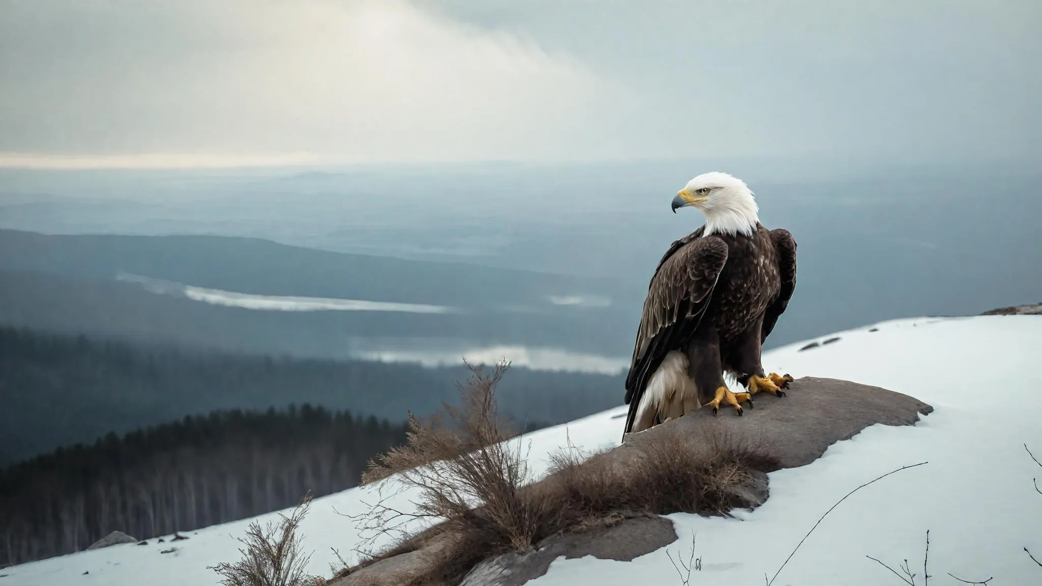 Generate a majestic eagle resting on the ground, surveying its territory with sharp eyes. Ideal for wildlife photography, nature scenes, or predator imagery. Create this stunning eagle observation scene using Vivago.ai’s AI image generator for lifelike animal artwork and outdoor visuals.