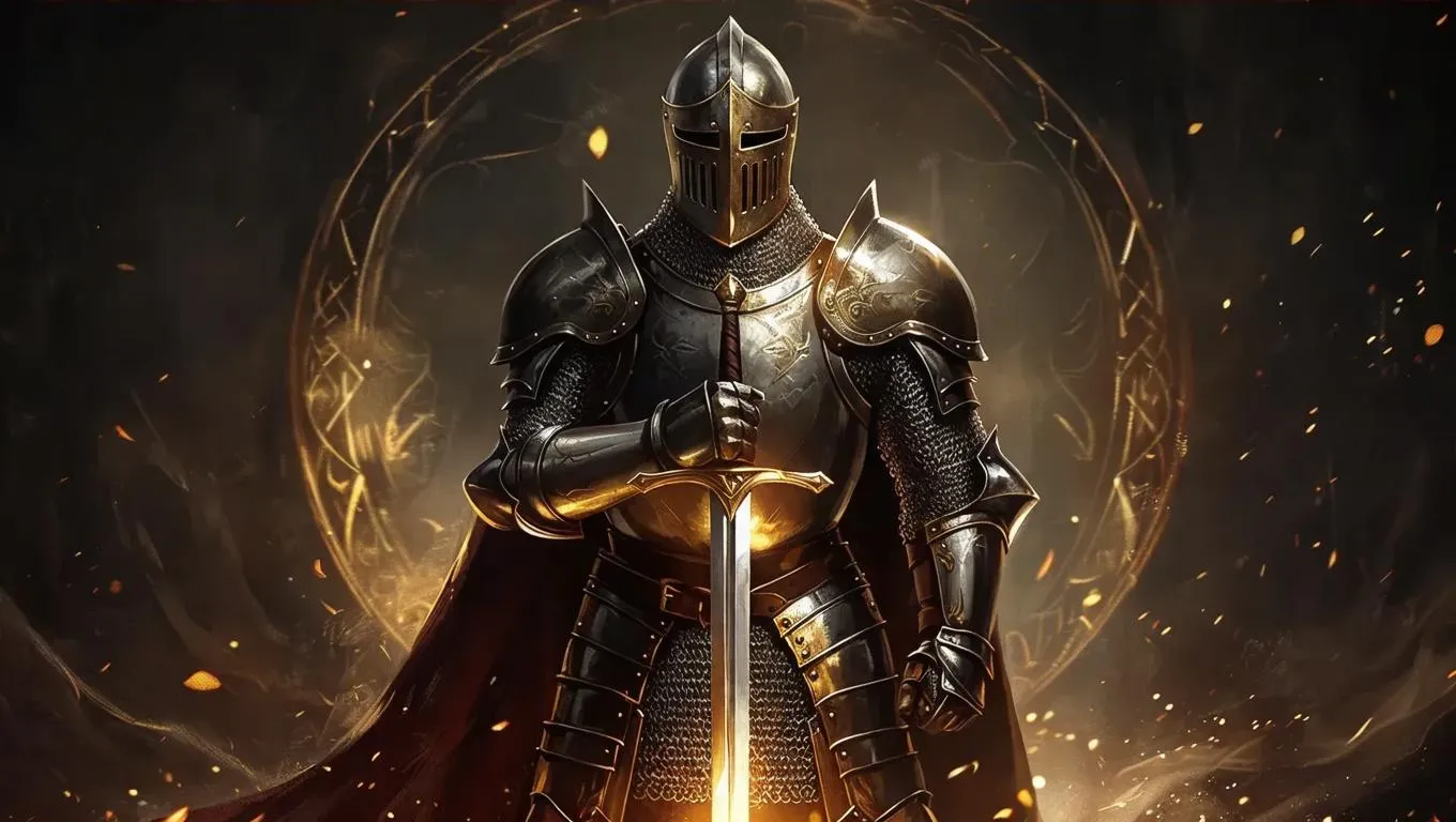 Create a striking medieval warrior in armor wielding a sword, glowing aura symbolizing power and leadership. AI-generated art enhances noble strength and heroic imagery for storytelling, games, or branding. Elevate visuals with professional AI effects. Transform ideas into epic, detailed artwork. #AIArt #MedievalHero #AIGeneration