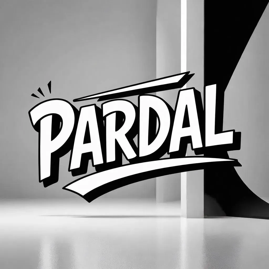 Generate a bold animated cartoon font slogan "PARDAL" in black-and-white contrast using AI. Create eye-catching text animations, retro-style typography, and dynamic slogan designs without human elements. Perfect for branding, digital art, or social media. Instant AI-generated graphics with customization options for striking monochrome visuals and professional-grade text effects.