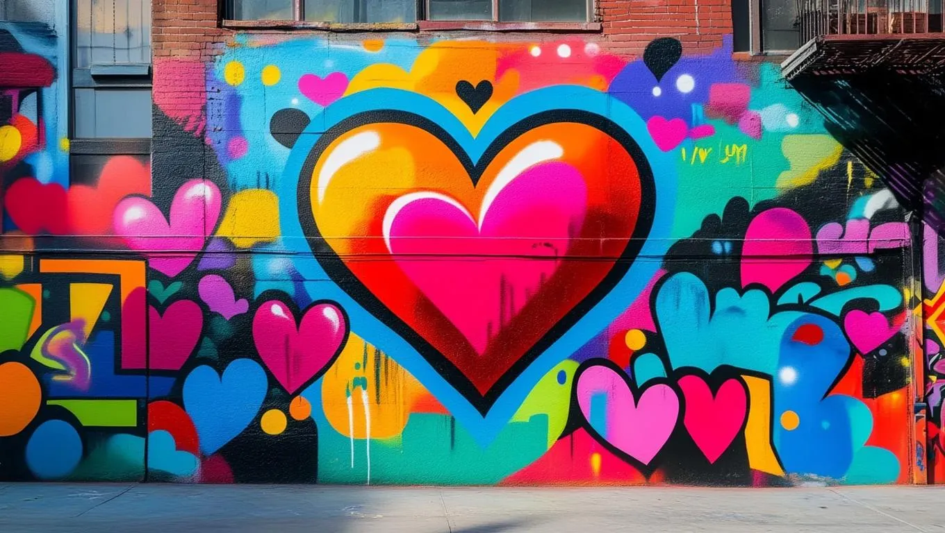 Generate vibrant graffiti-filled street scenes with playful love icons using Vivago.ai. Transform text prompts into colorful urban visuals with AI-powered precision. Perfect for creatives seeking dynamic, humorous, and eye-catching designs in seconds. Elevate your projects with professional-grade AI effects and vivid artistic expression.