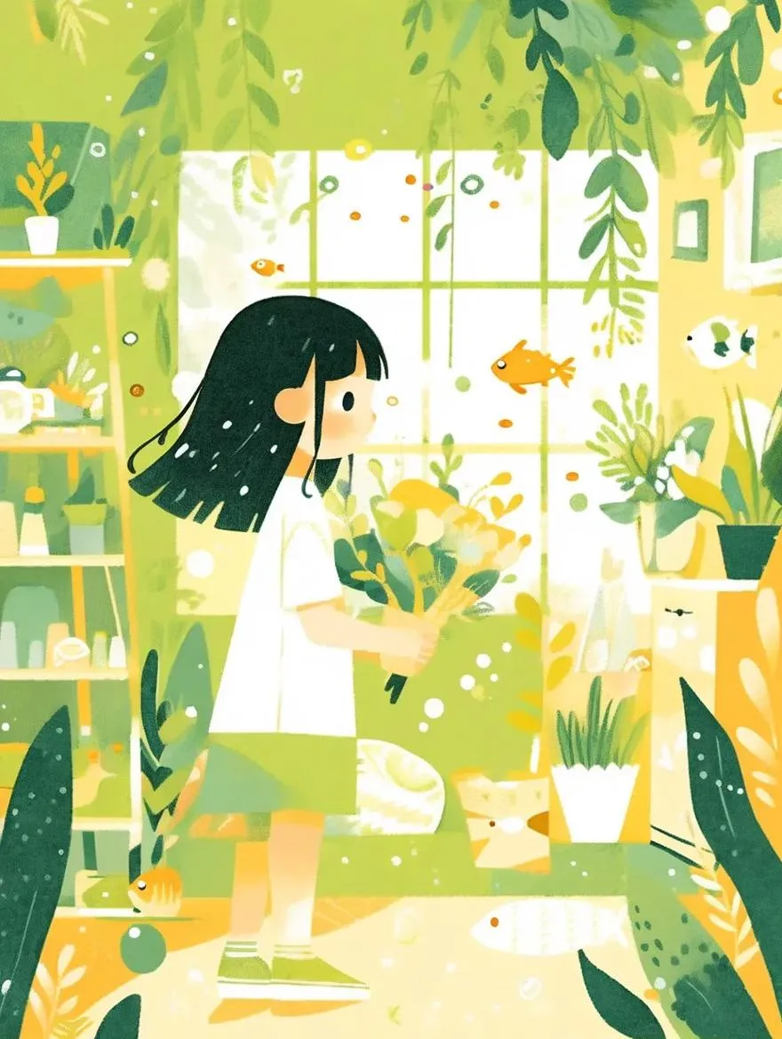 Create charming children's book illustrations with AI! Generate delicate line art scenes featuring cute girls, summer breezes, and undersea adventures using vibrant vector palettes. Blend pastel colors, coastal landscapes, and whimsical details like floral bouquets or glowing fish. Perfect for cover designs, interior settings, or nature-themed visuals with light yellow tones and linear green woods.