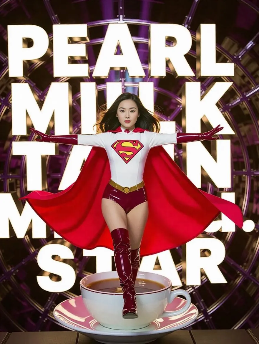 Transform text into cinematic visuals with AI-powered 4K HDR effects. Watch a Chinese student become 'Pearl Milk Tea Star' in vivid detail: pearl-toned tights, tea-cup uniform, red cape, and glossy accessories. Vivago.ai crafts distortion-free superhero scenes with flawless motion—360-degree flight, lifelike textures, and precision hand modeling for immersive, high-definition storytelling.