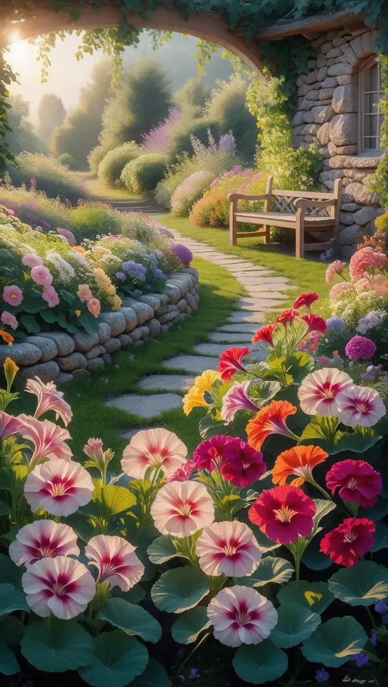 Generate stunning AI photos of geranium flowers blooming in vibrant gardens with vivago.ai. Transform text prompts into vivid, lifelike visuals showcasing intricate petals, lush foliage, and natural lighting. Ideal for garden enthusiasts, designers, or content creators seeking high-quality, customizable botanical imagery through advanced text-to-image AI tools and professional editing effects.