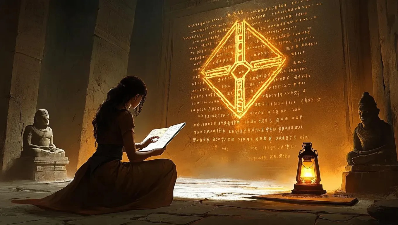 AI-generated anime art brings Irina's archaeological quest to life in a cinematic watercolor scene. Ancient half-sunken temple hall, glowing glyphs, dusty idols, and shifting hidden doorways rendered with mythic detail. Vivago.ai crafts immersive visuals blending warm lighting, cracked stonework, and ethereal storytelling.