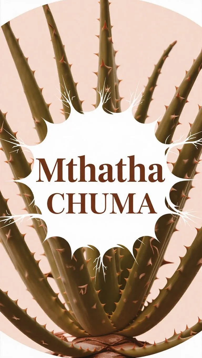 Create an AI-generated logo with earthy tones, centered "Mthatha CHUMA" text, and an Aloe Vera plant silhouette. Vivago.ai combines natural aesthetics and professional design tools for organic branding solutions. Craft polished, nature-inspired visuals using AI-powered creativity and customizable effects.