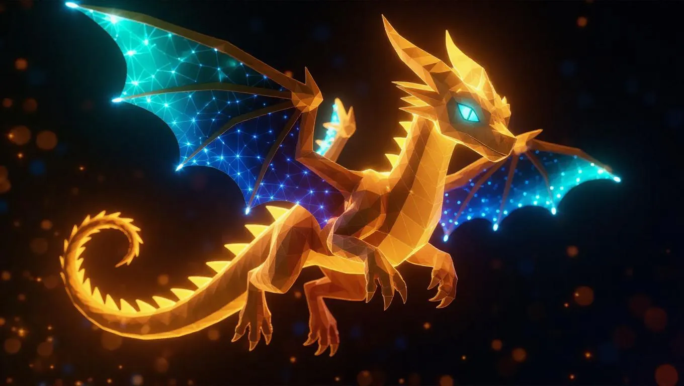 Create a vibrant 3D low-poly dragon-fairy hybrid with glowing golden aura, translucent wings, and light-particle trails for 2.5D platformers. Features idle, flying, and Light Burst attack animations. Mobile-optimized (under 6,000 triangles) glTF model with PNG textures for sparkling effects, blending vibrant colors and moody undertones. Ideal for stylized game assets with emotional depth.