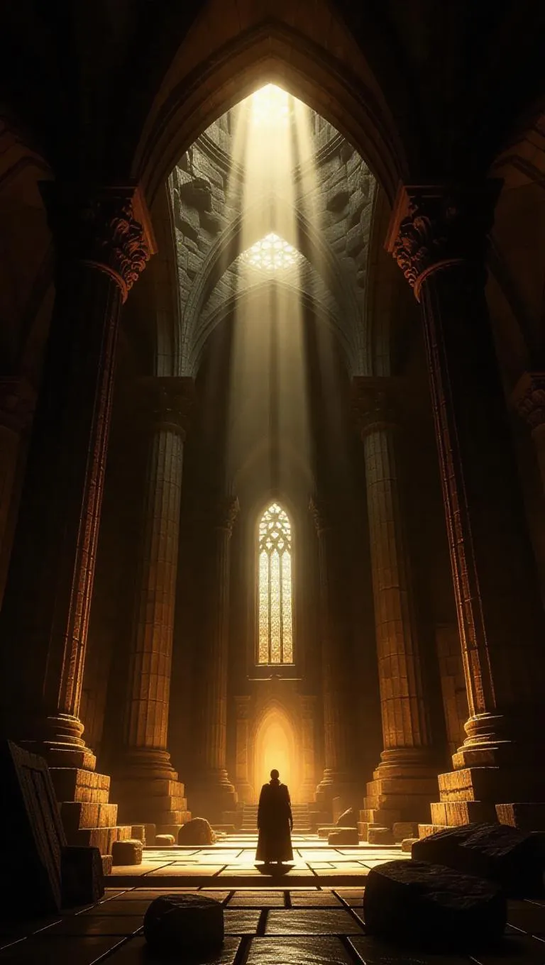 Unlock the haunting mystery of The Vault of Singing Stone: AI-generated ancient cathedral with crystal pillars humming inaudible tones. Explore sunken ruins where shadows linger and forgotten names echo through sound-etched stone. Perfect for eerie storytelling, immersive world-building, or chilling visuals. Create this haunting AI image of vibrating memories and cryptic self-discovery with VivaGO's advanced text-to-image tools.