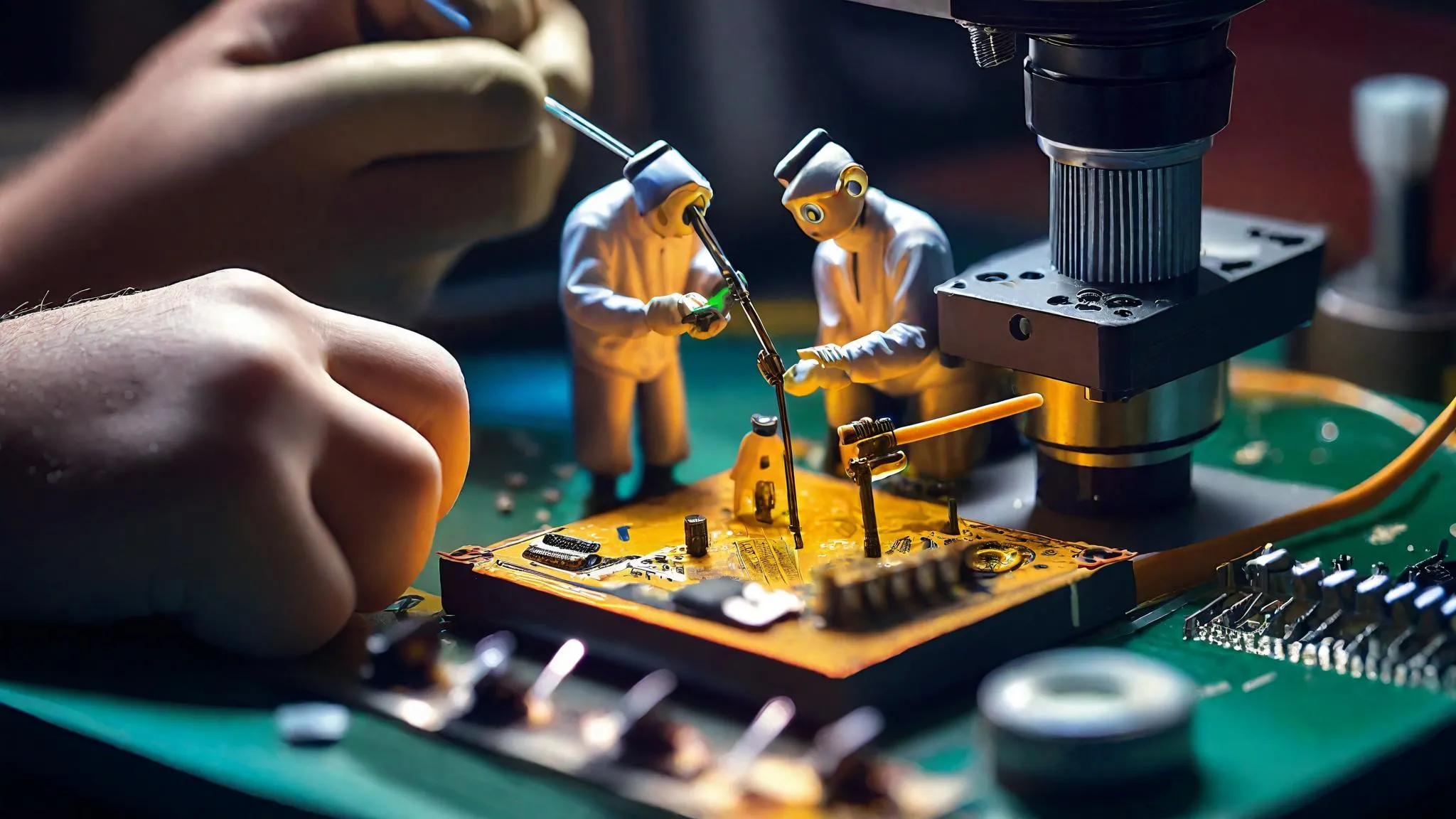 Discover AI-generated microscopic marvels with Vivago.ai's macro photography tools. Witness micrometer-sized workers repairing circuit boards—applying solder paste, vacuuming smoke, and cleaning flux. Our AI-powered platform transforms technical prompts into detailed 3D animations, perfect for engineering visuals, electronics storytelling, or industrial concept art. Create hyper-detailed macro shots of nanotechnology workflows effortlessly. Try Vivago.ai for precision-driven AI image generation.
