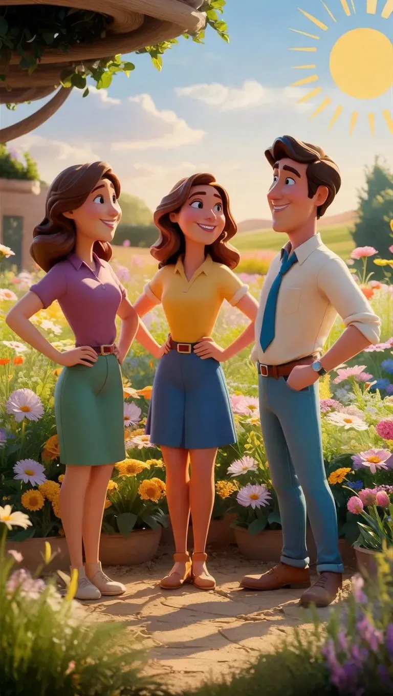 Create vibrant AI-generated images of happy, confident people in a sunny flower garden with Cartoon 3D, Pixar, and Disney-inspired styles. Blend success, nature, and a touch of Dune's aesthetic for uplifting, professional visuals. Perfect for dynamic storytelling and creative projects.