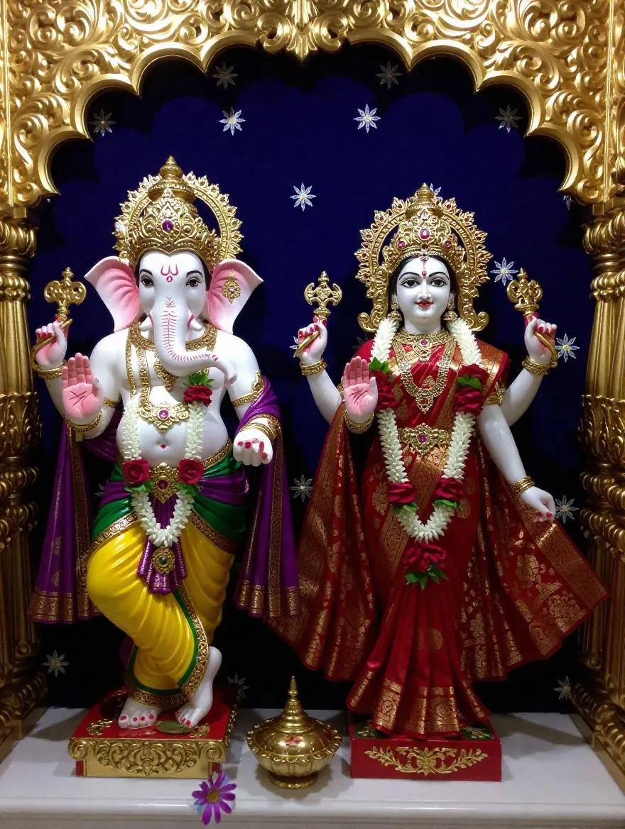 Create AI-generated artwork of Hindu deities Lord Ganesha and Goddess Durga with divine symbolism. Customize spiritual art, digital mandalas, or traditional motifs using Vivago.ai's AI image tools for cultural celebrations, devotional content, or artistic projects.