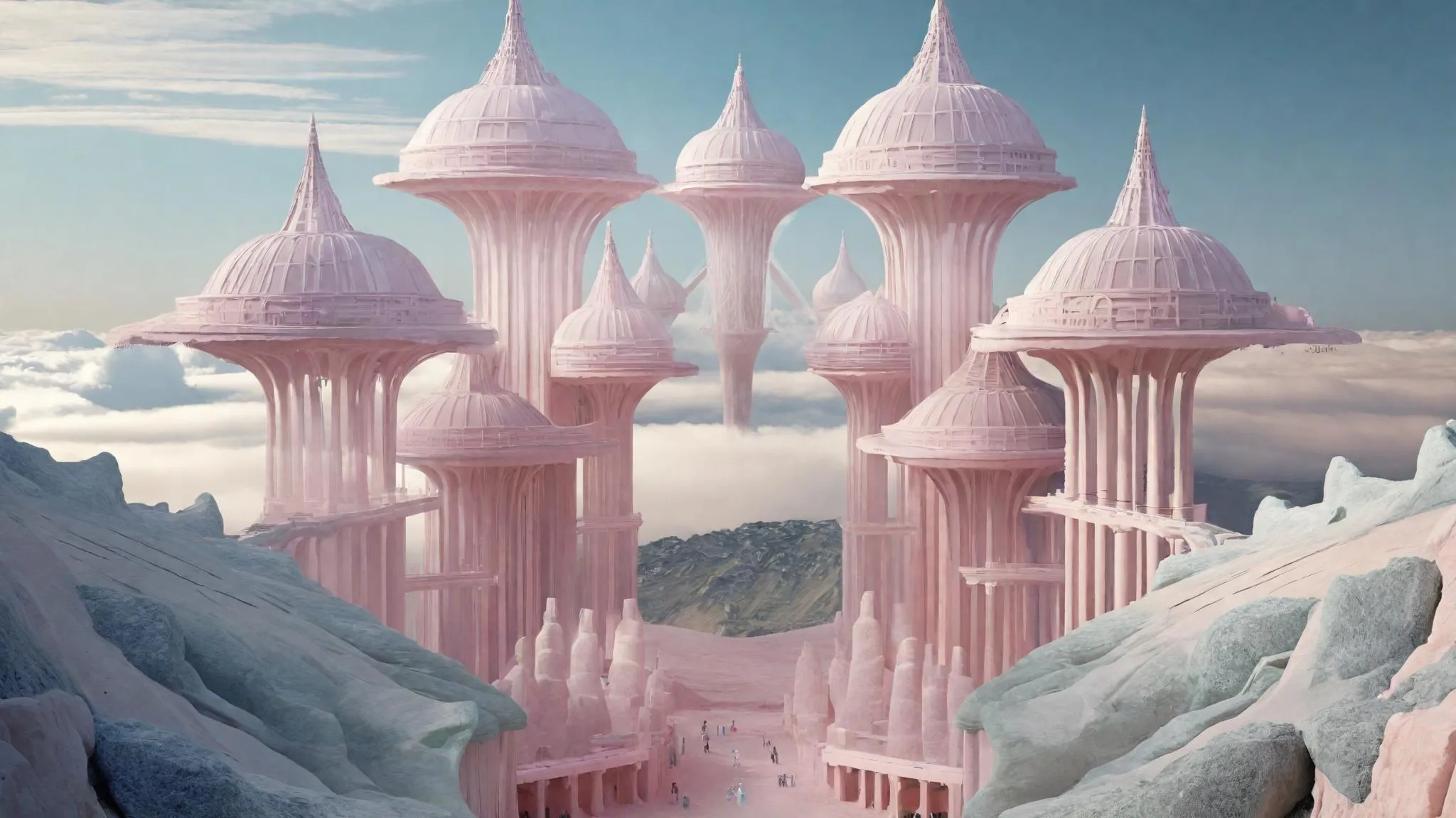 Transform your vision into Wes Anderson-inspired AI visuals with ethereal dragon bone structures floating above a minimalist pink Athenian temple. Vivago.ai crafts surreal, dreamlike scenes blending millennial/2000s aesthetics and movie-style symmetry for otherworldly tranquility. Generate AI-powered imagery with whimsical mystery and balanced surrealism.