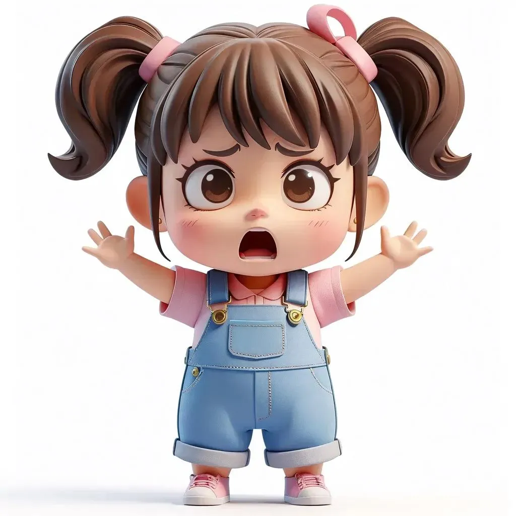 Create vibrant 3D cartoon blind box-style characters with AI! Generate chibi figures like this shocked brown-haired girl in light blue overalls, featuring detailed accessories and expressions. Perfect for toy design, collectibles, or animations. Transform text prompts into professional 3D models effortlessly. #BlindBoxArt #3DCartoon #ChibiDesign #AICharacterGenerator