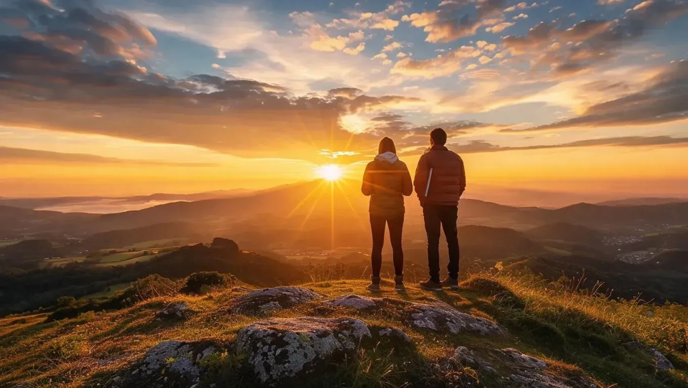 Vivago.ai transforms your vision into AI-generated art: two resilient figures at sunrise, journal and pen in hand, embodying hope. This prompt-to-image scene merges determination, golden landscapes, and motivational symbolism. Explore AI-powered creativity for professional visuals that inspire perseverance. Elevate storytelling with cutting-edge text-to-image tools for emotionally charged, horizon-gazing narratives.