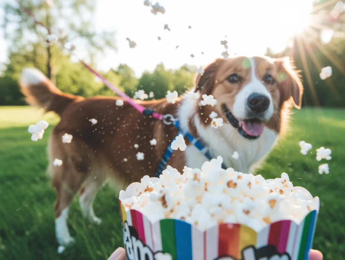 Generate a whimsical AI image of a dog walking with popcorn using vivago.ai. Easily turn quirky text prompts like 'A dog walking with popcorn' into dynamic, creative visuals with our powerful AI image generator. Explore fun themes and unique ideas effortlessly.