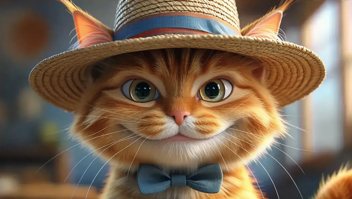 Create a whimsical AI-generated comic cat with vivago.ai. Design vibrant orange fur, oversized hats, and exaggerated charm for eye-catching digital art. Perfect for playful visuals, dynamic expressions, and creative projects using AI image generation tools. Ideal for cartoons, social media, or storytelling with a mischievous, flamboyant style.