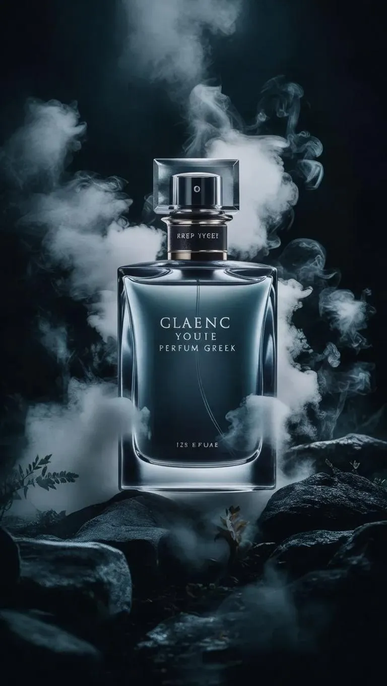 Create AI-generated visuals of a perfume bottle shrouded in dense mist, blending dark drama and soft label glow for a Greek mythology-inspired closing scene. Perfect for mystical fragrance campaigns, luxury branding, and dramatic AI-powered product photography.