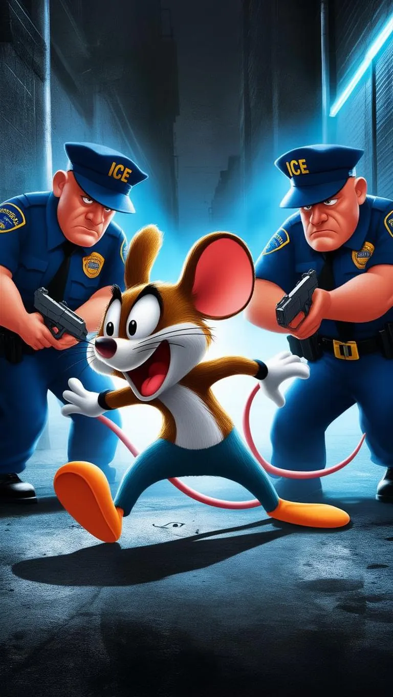 Generate a satirical cartoon image of Speedy Gonzales detained by ICE agents using AI tools. Explore political humor, cultural commentary, and creative AI art with text-to-image generation for bold, thought-provoking visuals. Perfect for meme creators and digital artists seeking edgy, topical content.