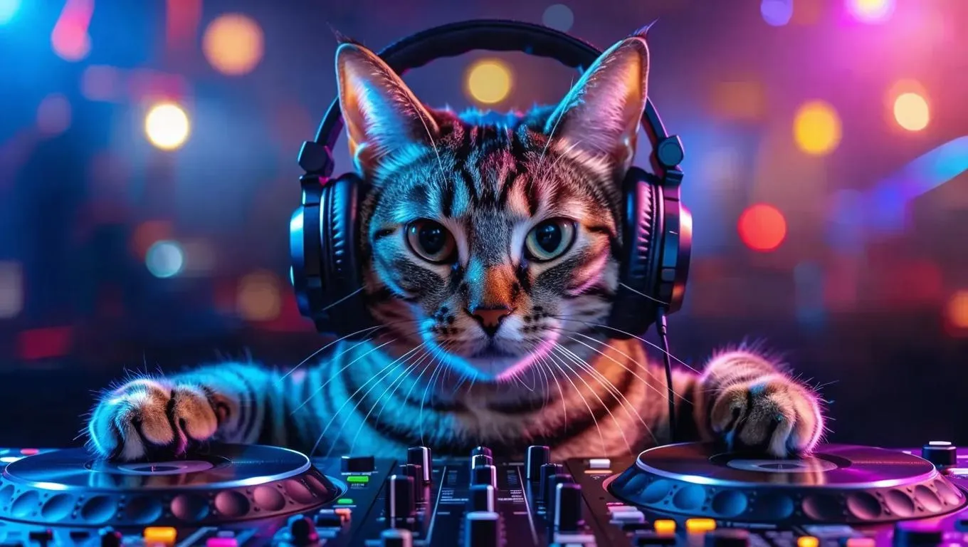 Transform your ideas into vibrant AI-generated images of a DJ cat with headphones, grooving in a dynamic EDM scene. Create music-inspired visuals effortlessly with VivaGo AI's creative tools for stunning, professional-grade AI art.