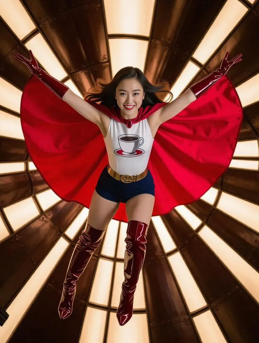Transform text into cinematic visuals with AI-powered 4K HDR effects. Watch a Chinese student become 'Pearl Milk Tea Star' in vivid detail: pearl-toned tights, tea-cup uniform, red cape, and glossy accessories. Vivago.ai crafts distortion-free superhero scenes with flawless motion—360-degree flight, lifelike textures, and precision hand modeling for immersive, high-definition storytelling.