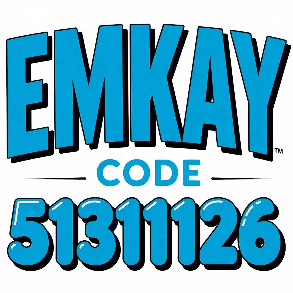 Generate bold 'EMKAY' text with playful '51311126' bubble font in vibrant blue on a clean white background. Modern, cartoonish AI design ensures balanced composition, visual appeal, and crisp readability for eye-catching graphics. Perfect for logos, branding, or digital art using vivago.ai's creative tools.
