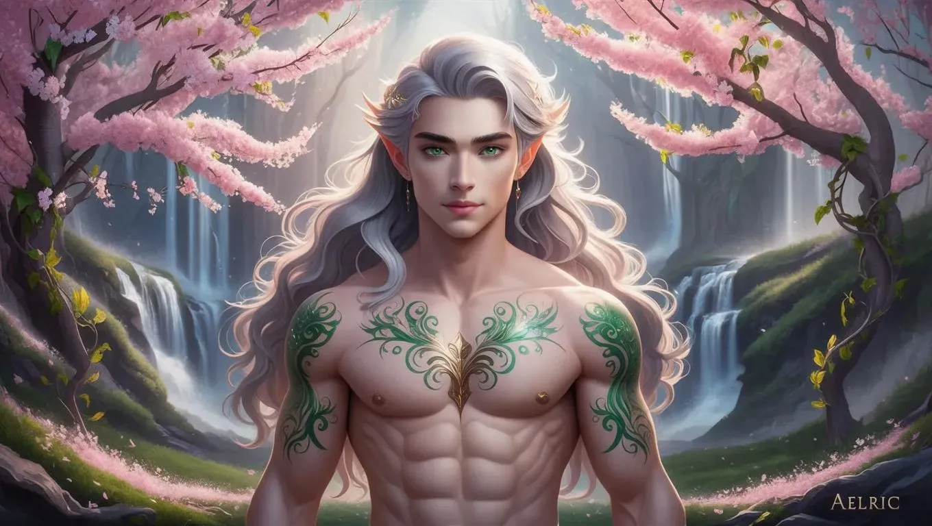 Create ethereal AI-generated characters like Aelric, blending androgynous beauty with nature's mystique. Vivago.ai crafts silver-pink cherry blossom hair, luminescent emerald eyes, and enchanted vine tattoos. Design lean, muscular fantasy figures in vibrant anime style using advanced AI art tools for professional, mystical visuals.