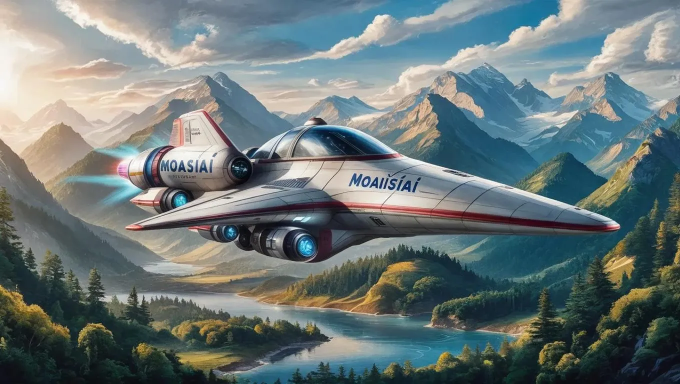 Explore AI-generated art of a hand-drawn spaceship with the "Moaisiai" logo, blending sci-fi creativity and natural landscapes. Use VivaGo.ai's AI tools to transform text prompts into unique visuals for professional-grade, nature-inspired spaceship designs—ideal for digital artists and sci-fi enthusiasts.